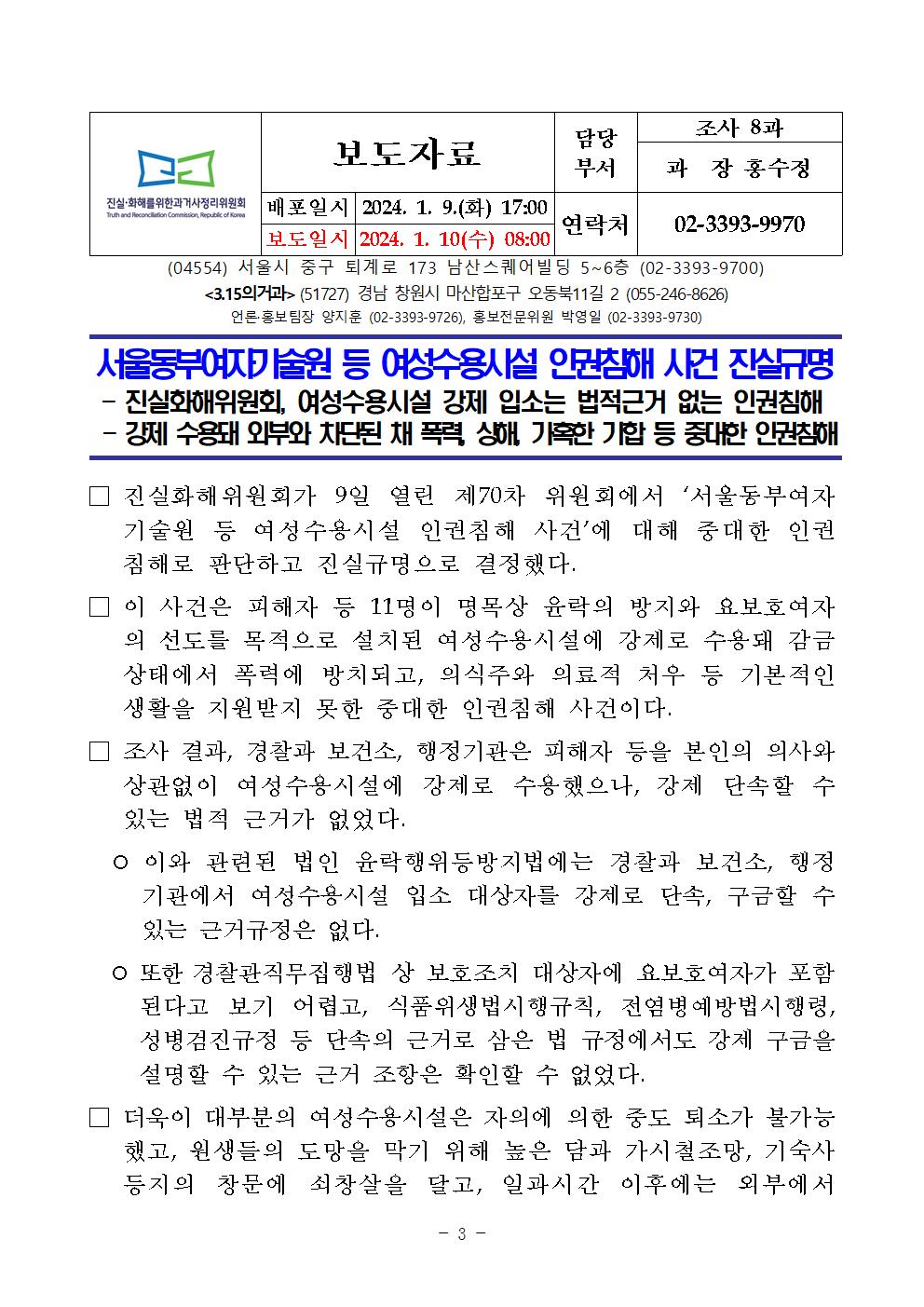 진실화해위원회 제70차 전체위원회(2024. 1. 9. 화)에서 진실규명 결정한 보도자료입니다.
