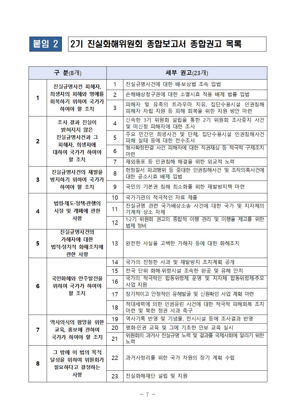 2기 진실화해위원회 종합보고서 발간 대국민 보고회 보도자료 및 관련 자료입니다.