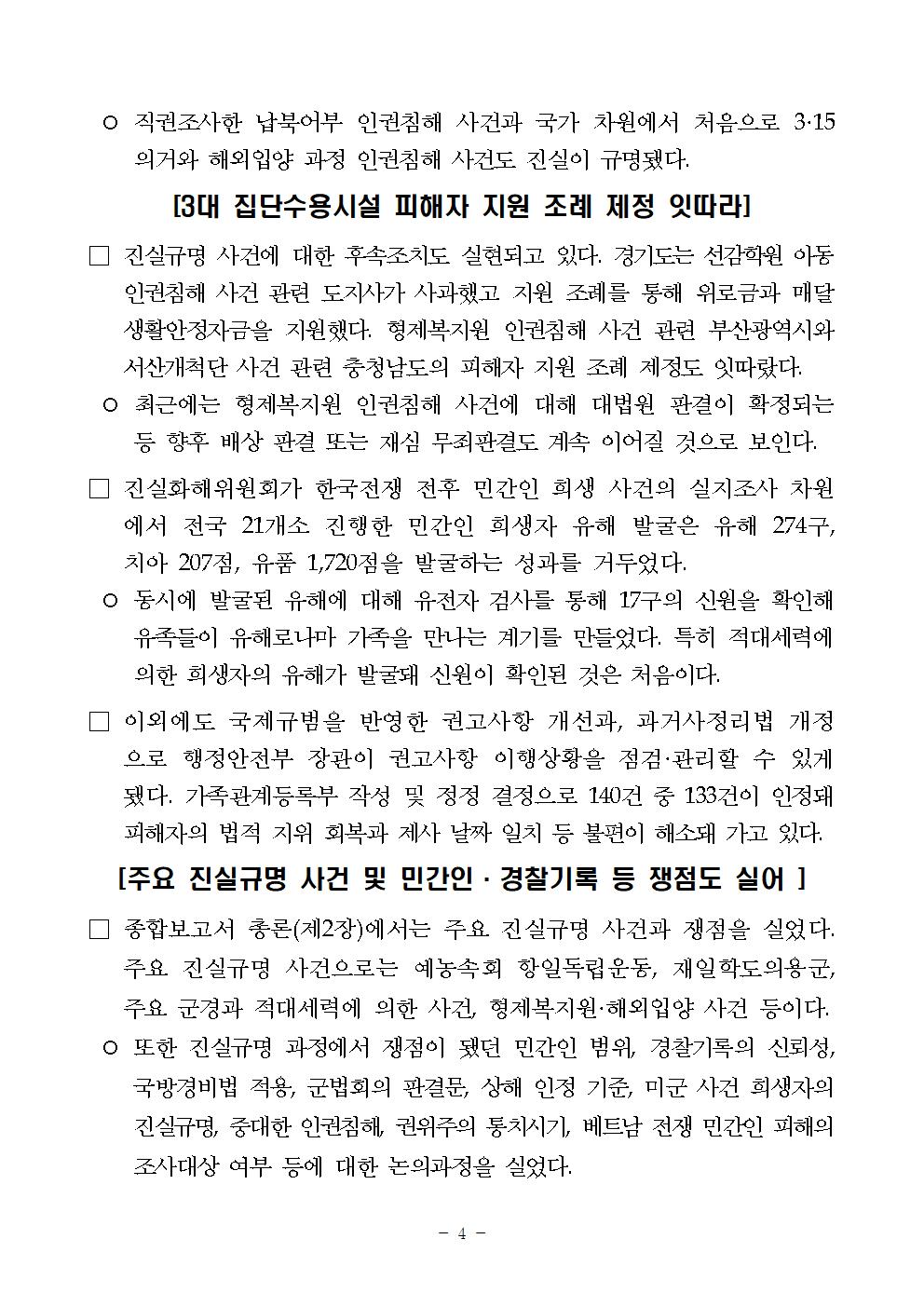 2기 진실화해위원회 종합보고서 발간 대국민 보고회 보도자료입니다.